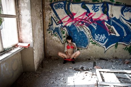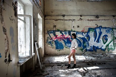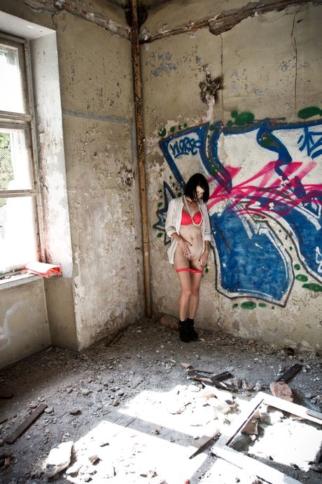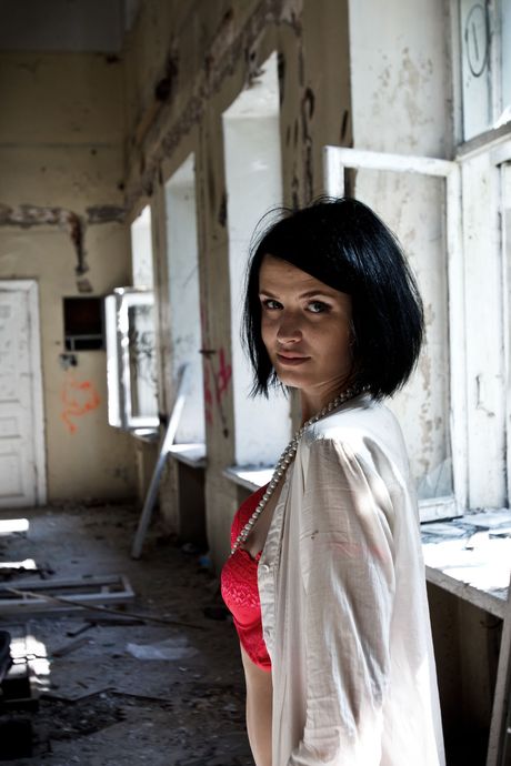 Lana W strips off her black lingerie and displays her big tits and hot ass