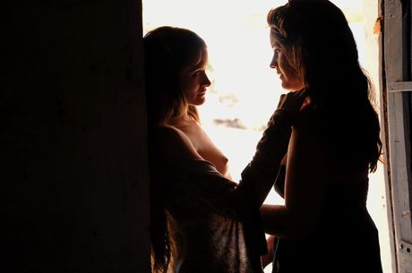 Lesbian girls Candy O & Daniela lick and finger twats during sex on a bed