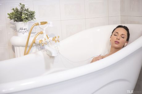 Lovely teen Lilu fingers her pussy while taking a bath in the nude