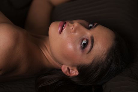 Magnetic teen Lucy Kent removes her lingerie and stockings to pose nude