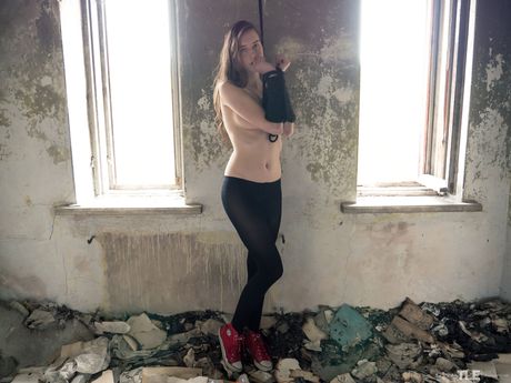 Martha is tied up and helpless as she pleasures her hairy pussy