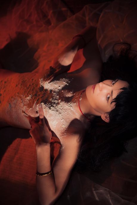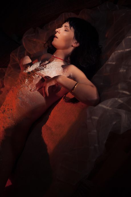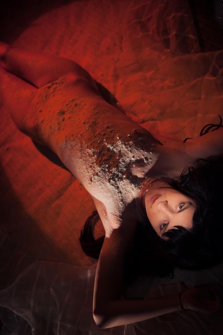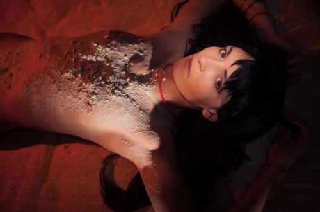 Naked girl Andrea P strikes great solo poses on a sandy beach