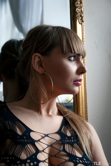 Natalie Russ strips off her black lingerie and heels and displays her big