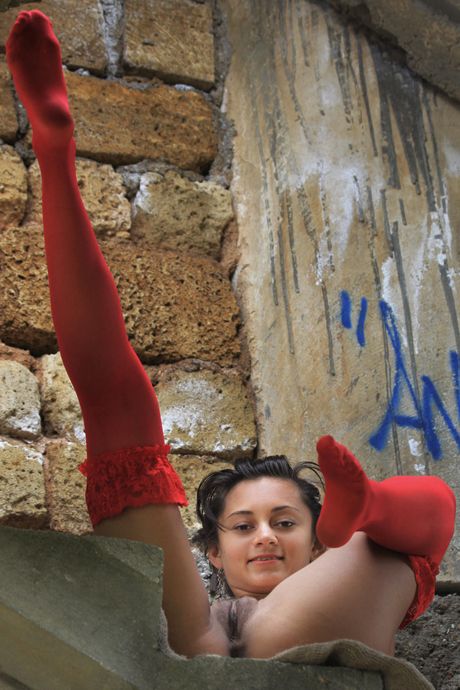 Nice teen girl Sima B bares it all against a backdrop of graffiti