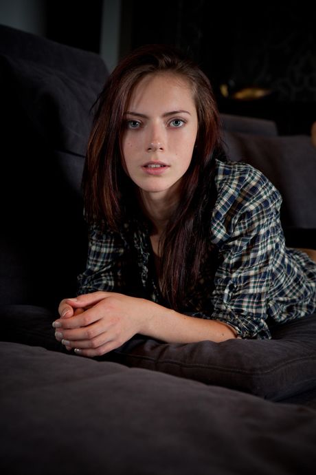 Perfect teen Christel A removes her bikini to finger her pussy on a balcony