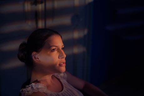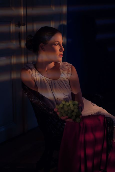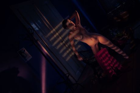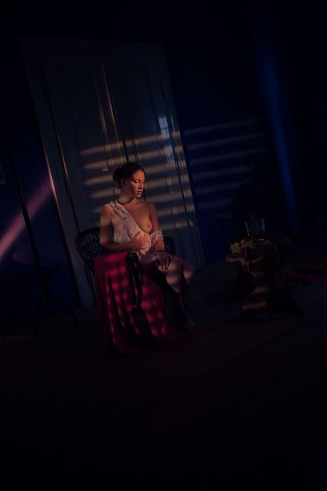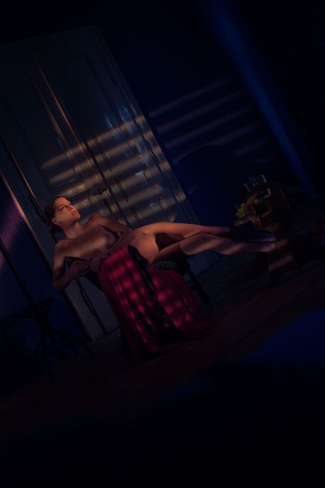 Pretty teen Raeah strips naked and poses with a plate of food in her room