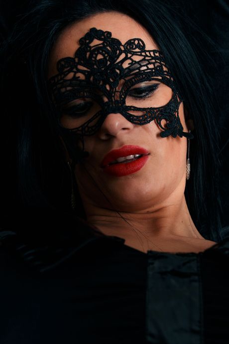Rebeka in black stockings and heels spreads her legs to finger her pussy
