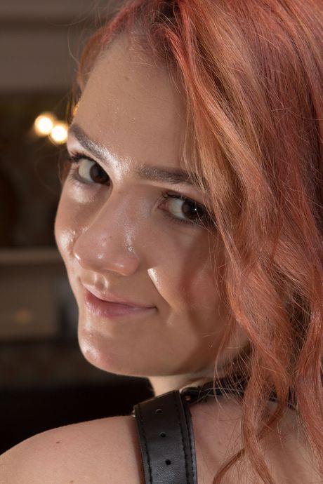 Redheaded teen Carly fingers her pussy while in handcuffs