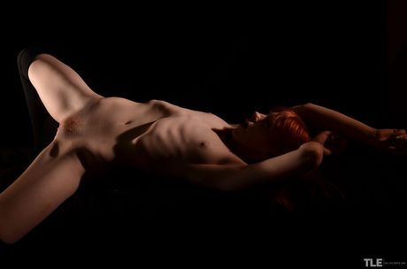 Riann strips off her black lingerie and toys her pussy with a glass dildo