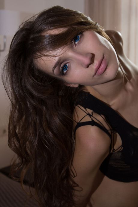 Sabrina A takes off her lingerie and fingers her pussy in a solo scene