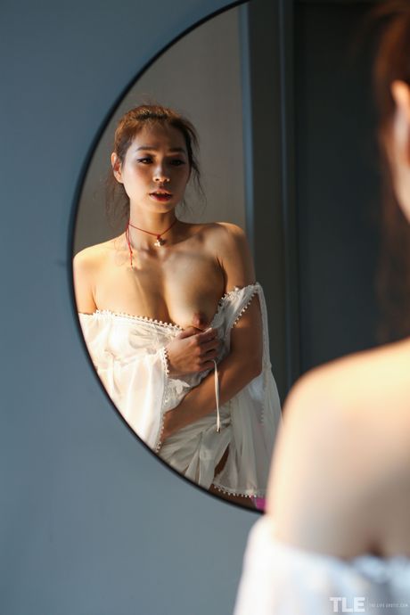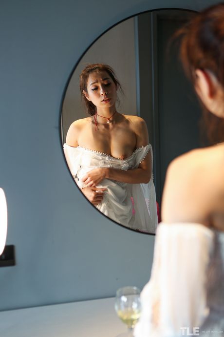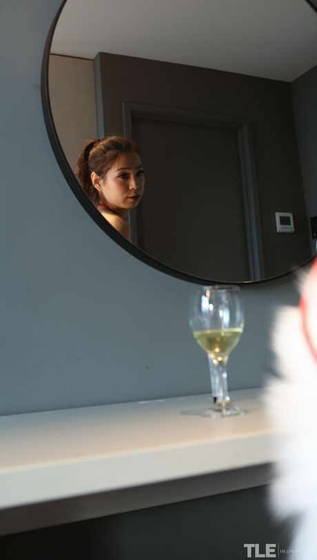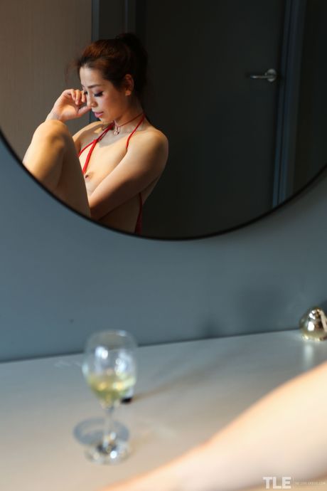 Sexy Asian teen Abbie toys her pussy with a wine glass & a vibrator