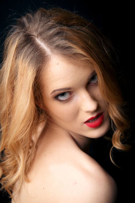 Sexy blonde Amely plays with a bead chain while wearing a mask