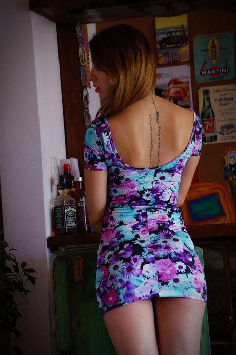 Sexy blonde Ivonne A strips to her boots and teases with her big tits