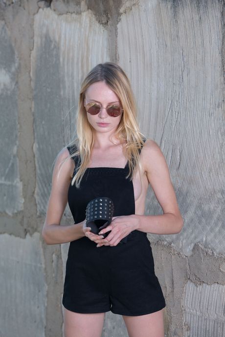 Sexy blonde Maria Rubio flashes her big tits & spreads her pussy in the street