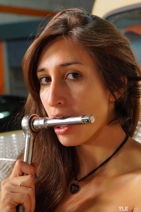 Sexy Latina teen Carol O gets naked in a garage while working on a car