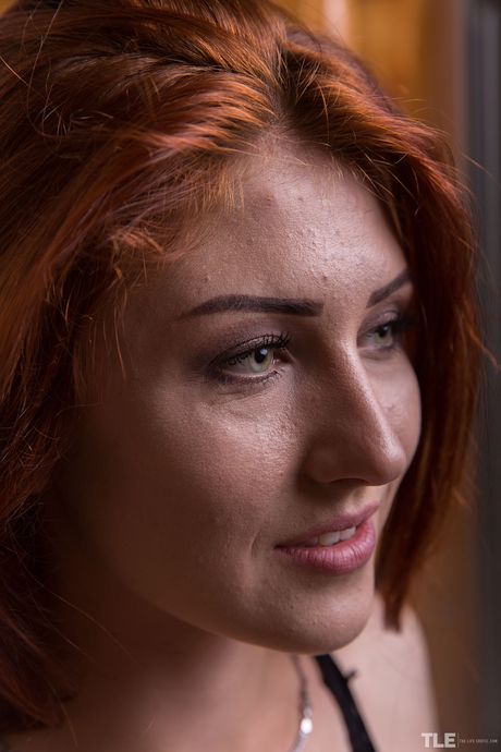 Sexy redhead Alietta removes a black bodysuit to pose nude in stockings