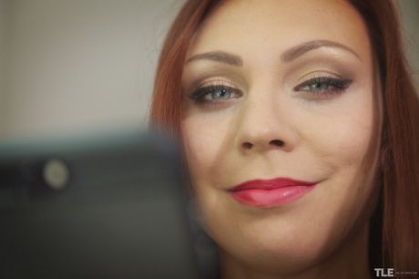 Sexy redhead Ornella masturbates with a vibrator while waiting for a taxi