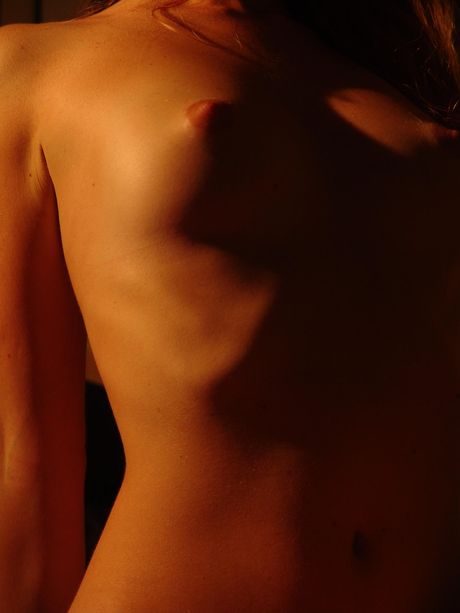 Sinnead poses naked on the bed showing off her big tits and hairy pussy