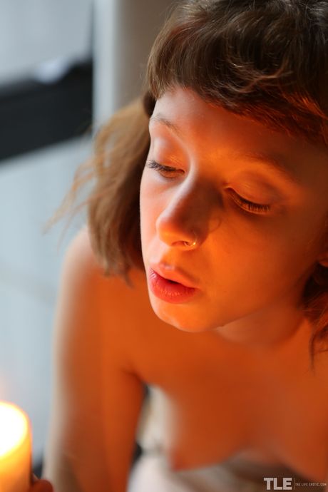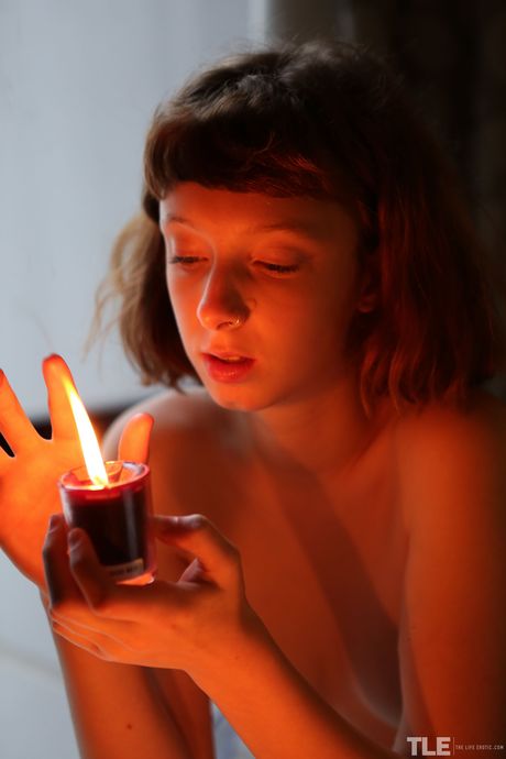 Sondrine was lost in the flames of the candle as she melted it on her skin