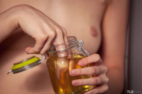 Svelte teen Lil Karla oils up her naked body before a finger fuck in a tub
