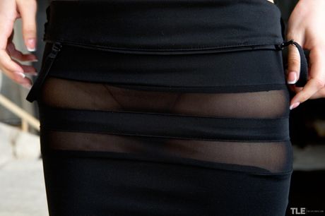 Tattooed teen Josephine removes her lingerie before fingering her pussy