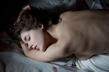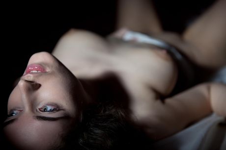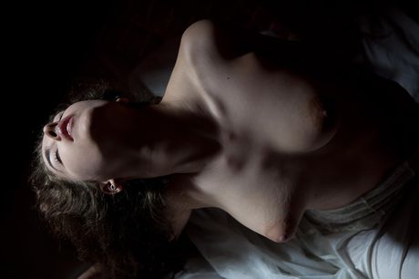 Teen model Emily J removes her lingerie before fingering her pussy on a bed