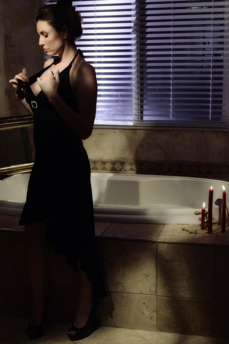 Teen model Jamie Lynn removes a bikini before a finger fuck in a bathtub
