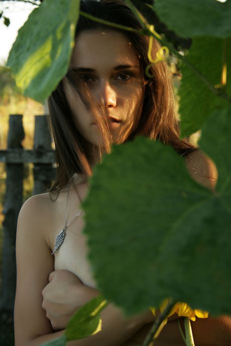 Tempting teen Ira I strips her white lingerie & poses nude in the garden