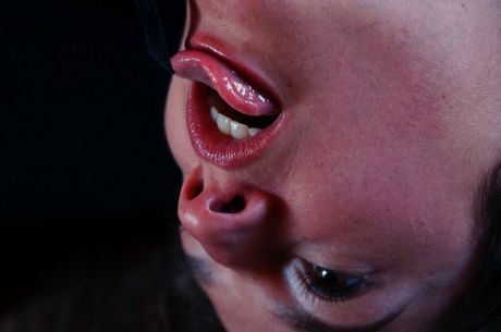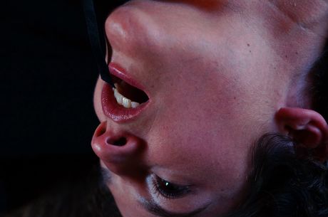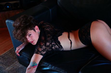 Tempting teen Izabella removes black lingerie before fingering her hairy pussy