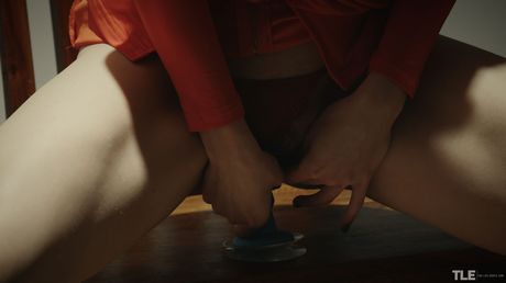 Tempting teen Kalisy toys her pussy with a dildo while masturbating