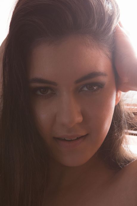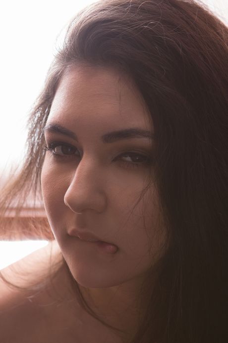 Thin teen Keri gets naked in a leather jacket and rubs her pussy