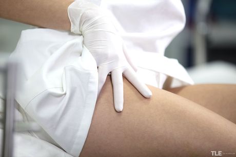 Thin teen Veronica Clark removes her nurses uniform to masturbate