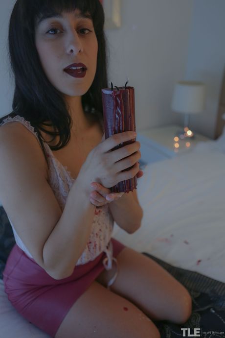 Violet Russo is in her bedroom, setting a sexy mood with candles. Tiny white
