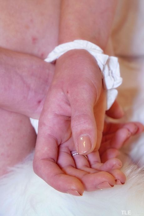 Young blonde Alena sports a spider tattoo while showing her naked body in stockings