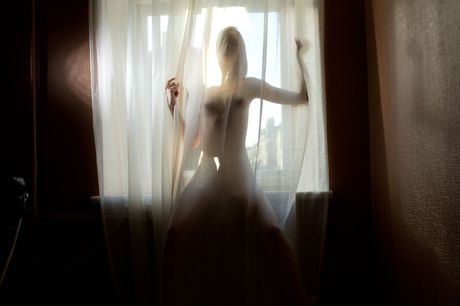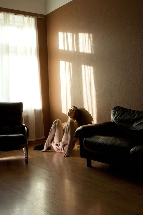 Young redhead Shafry fingers her pussy after getting naked on a bed