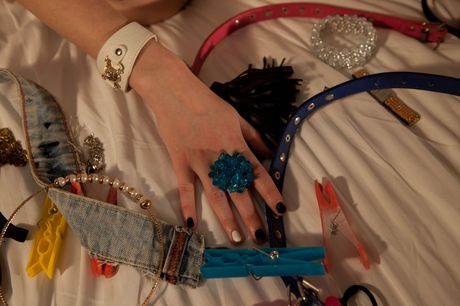 Zara D strips off her black lingerie and teases her pussy with the clothespins