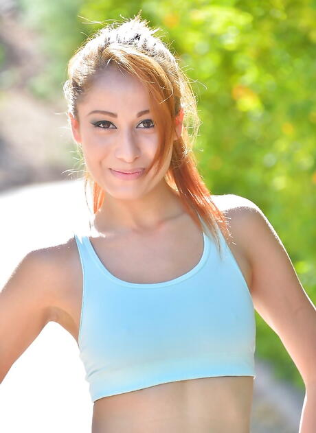Very attractive 1989 redheaded young Lilly Evans uncovering small tits and spreading her legs outdoor
