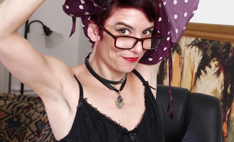 Very attractive aged Nikki Lee exhibits small tits and hairy twat