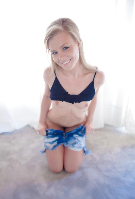 Very attractive american babe Nicole Clitman in shorts shows small tits and shaved pussy