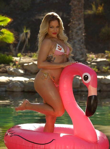 Very attractive american blond Kissa Sins revealing big boobies and masturbating outdoor