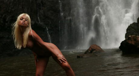 Very attractive american blond milf Jesse Jane in hot bikini exposing big knockers and jerking off outside