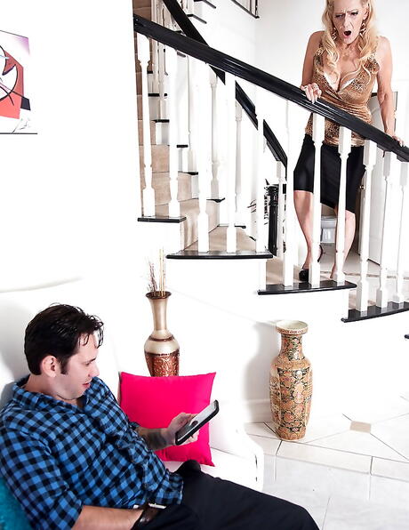 Very attractive american blonde grandma Layla Rose in skirt drilled in her vagina after hot blowjob