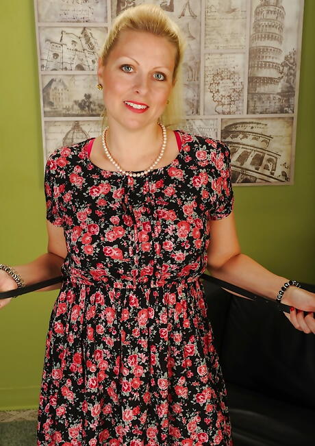 Very attractive american blonde mature Zoey Tyler revealing big boobies and bald pussy