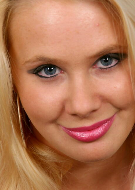 Very attractive american blonde young Angel in sexy skirt exposing big tits and masturbating