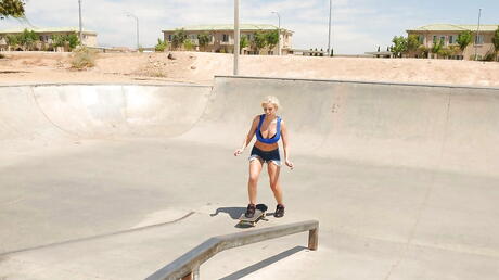 Very attractive american Britney Amber in fancy shorts in hardcore sex action outside