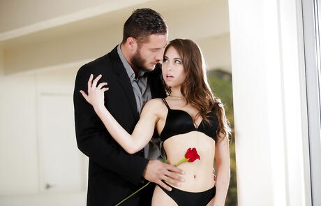 Very attractive american brunette bombshell Riley Reid in underwear fucked in the ass after sucking big dick