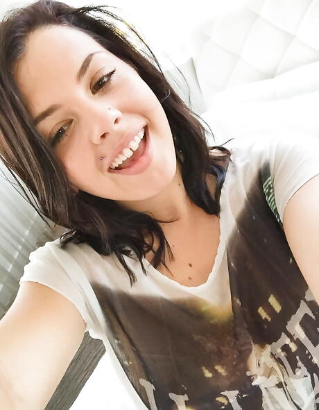 Very attractive american brunette Keisha Grey bares big knockers and pussy
