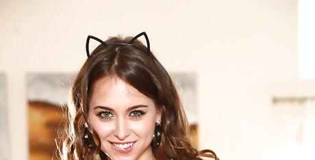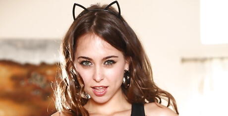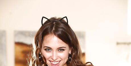 Very attractive american dark hair porn star Riley Reid in sexy undies deepthroating big dick and takes a cum blast on face