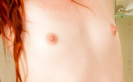 Very attractive american redhead teen Elle Alexandra in hot lingerie revealing tiny tits and shaved pussy in bathroom