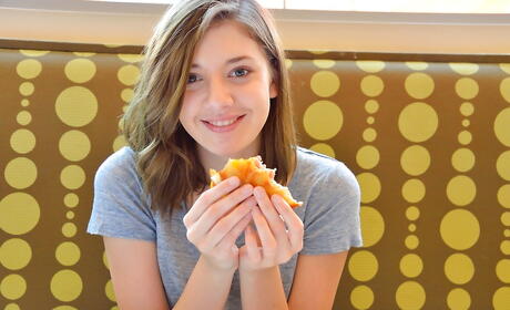 Very attractive american redheaded teen Blaire Ivory shows tiny tits and toys her twat at pool